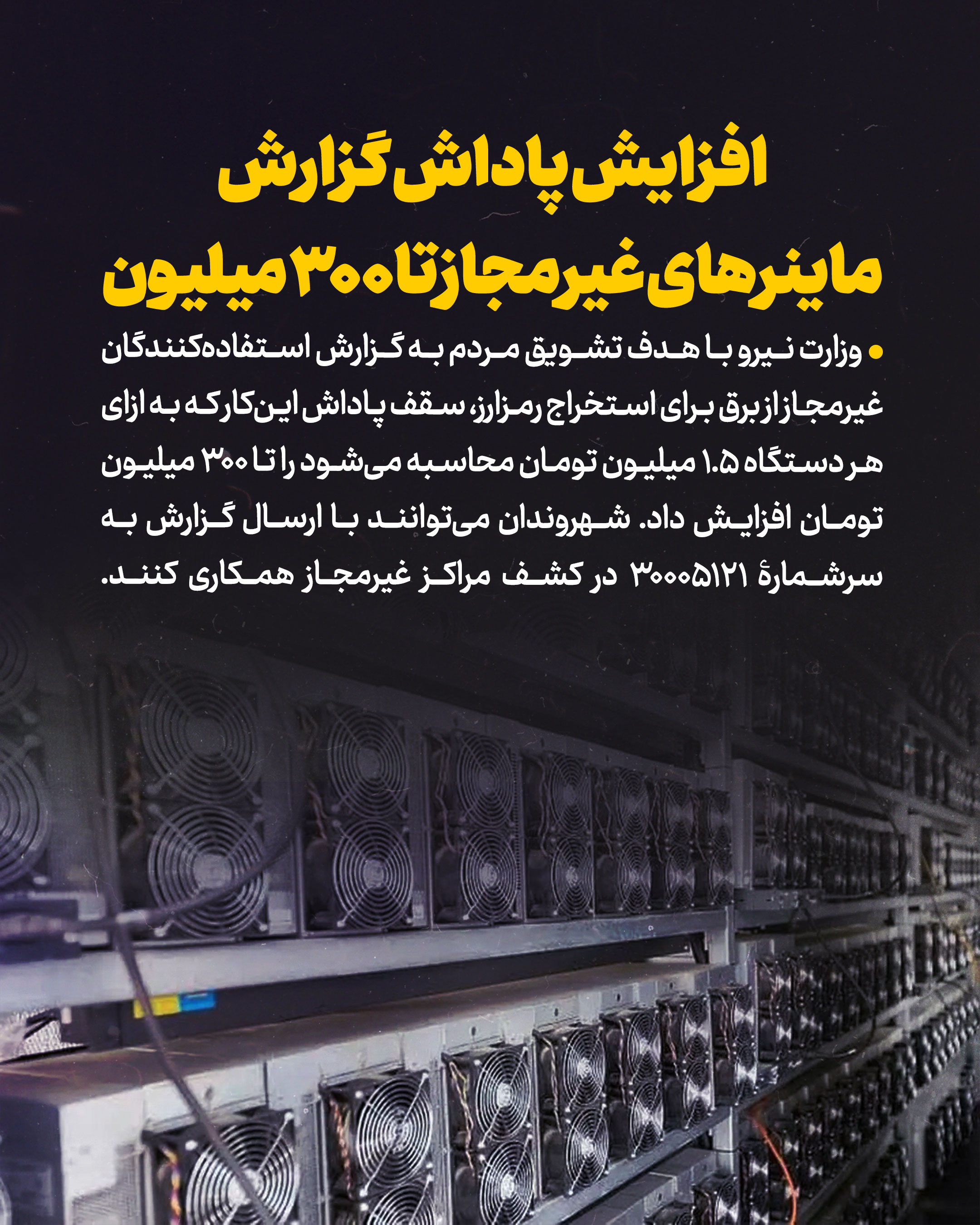 افزایش پاداش گزارش ماینرهای غیرمجاز تا ۳۰۰ میلیون