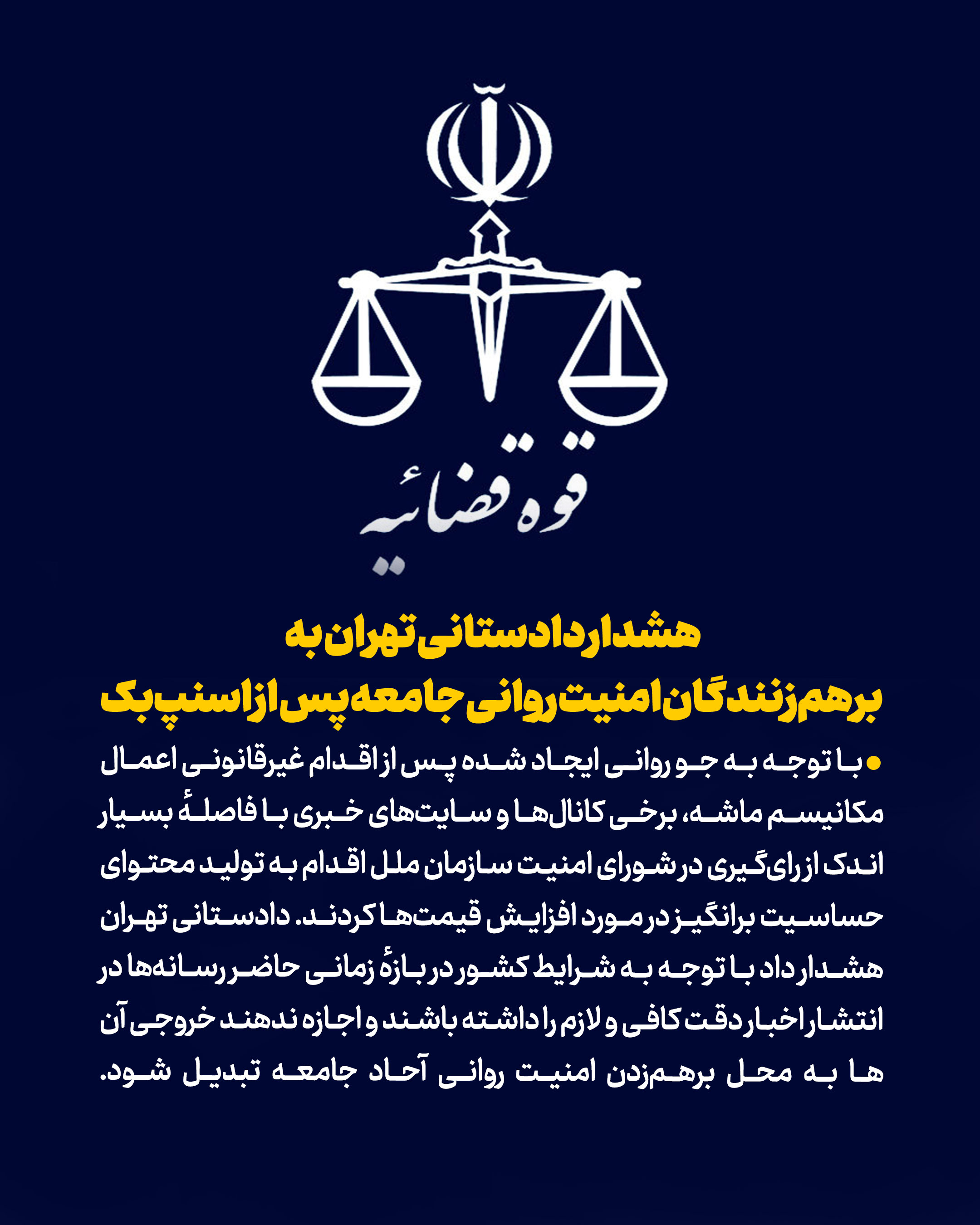 هشدار دادستانی تهران به برهم زنندگان امنیت روانی پس از اسنپ بک