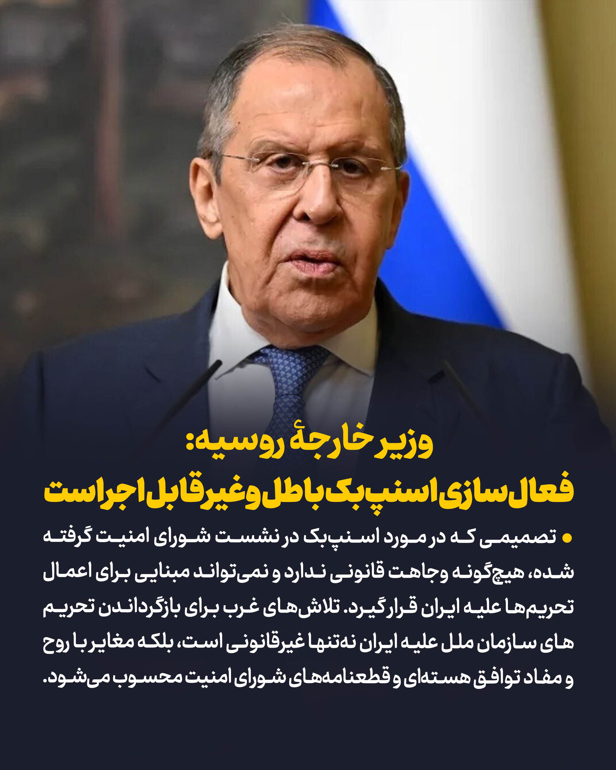 وزیر خارجه روسیه: فعال سازی اسنپ بک باطل و غیر قابل اجراست