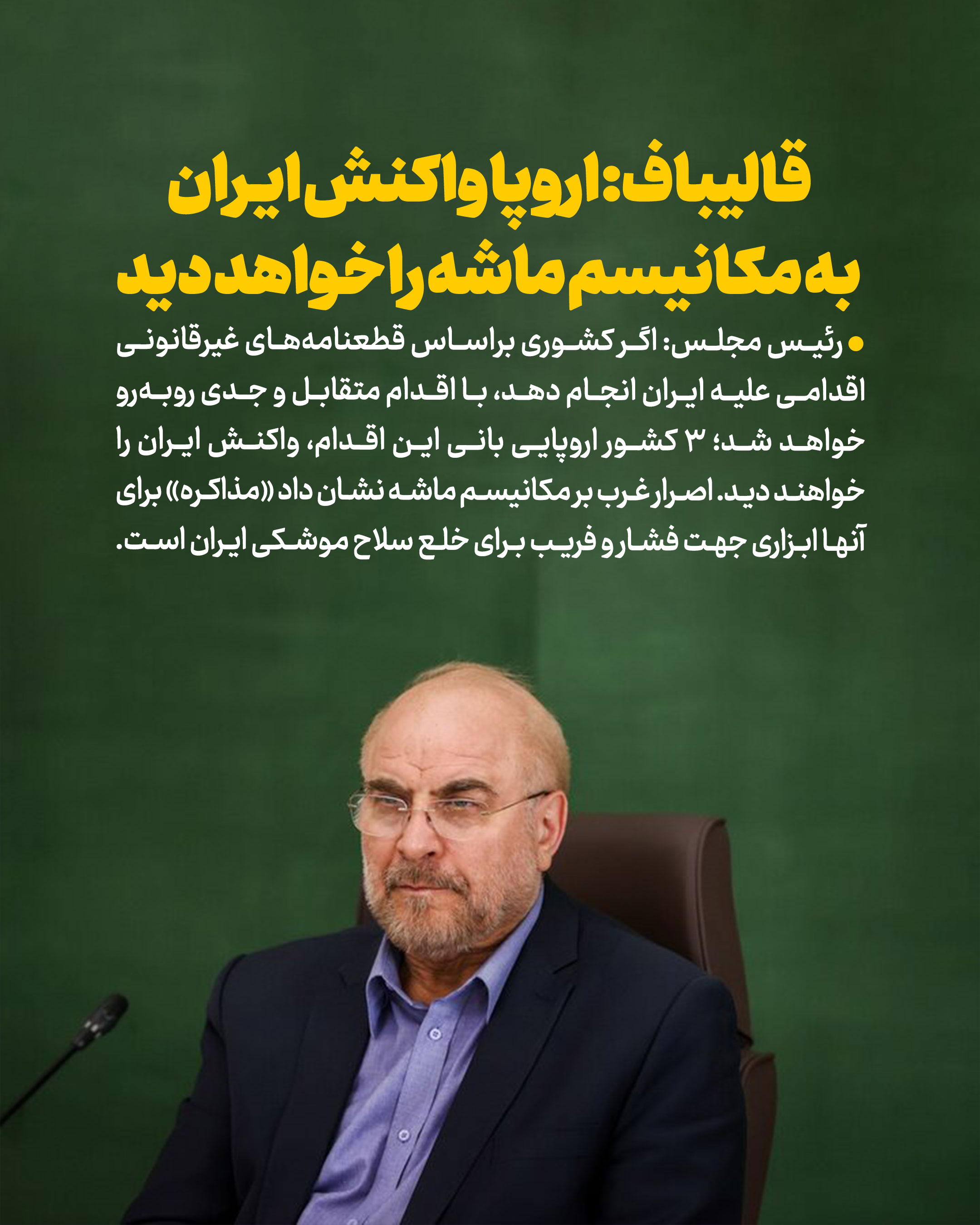 قالیباف: اروپا واکنش ایران به مکانیسم ماشه را خواهد دید