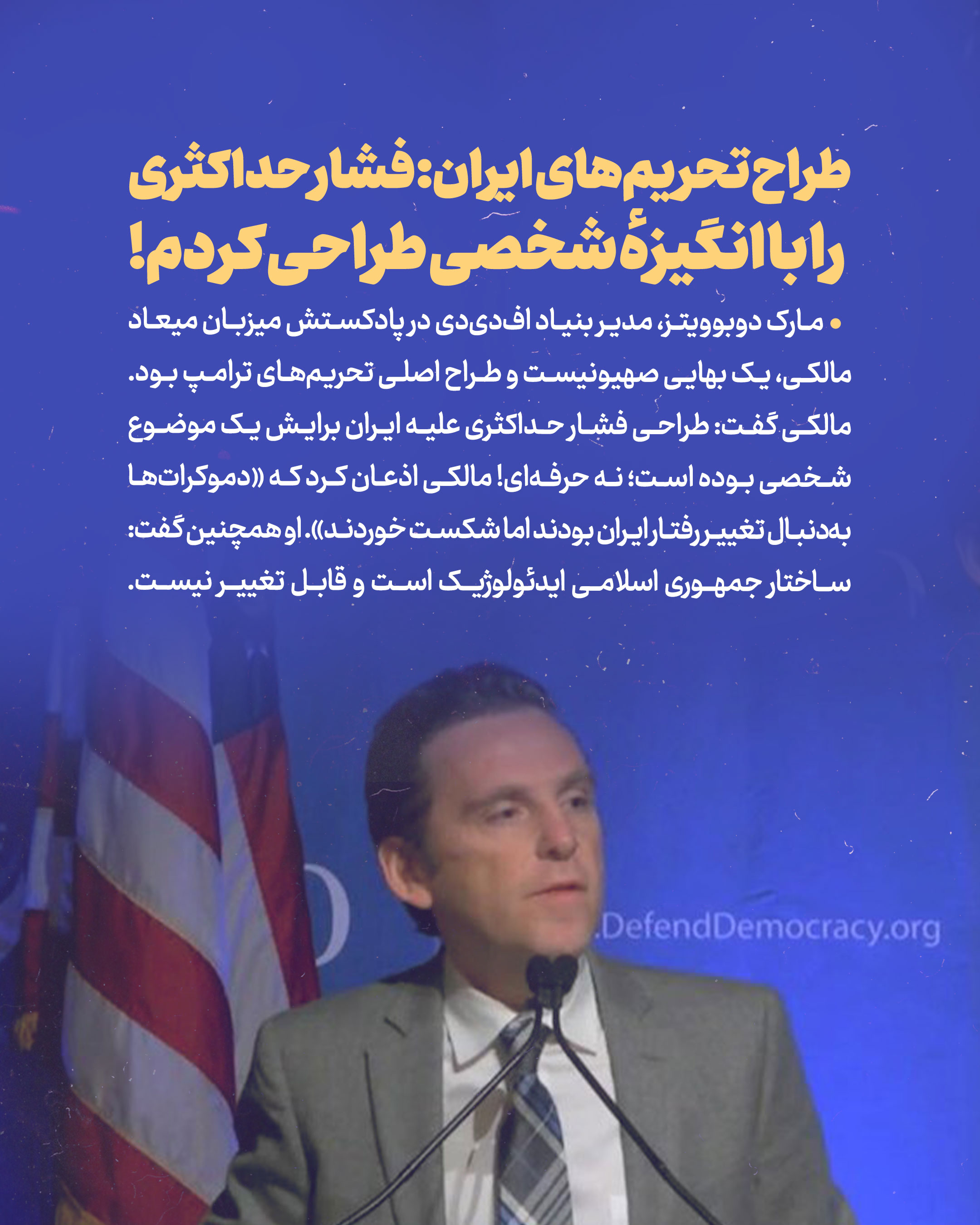 طراح تحریم های ایران: فشار حداکثری را با انگیزه شخصی طراحی کردم!