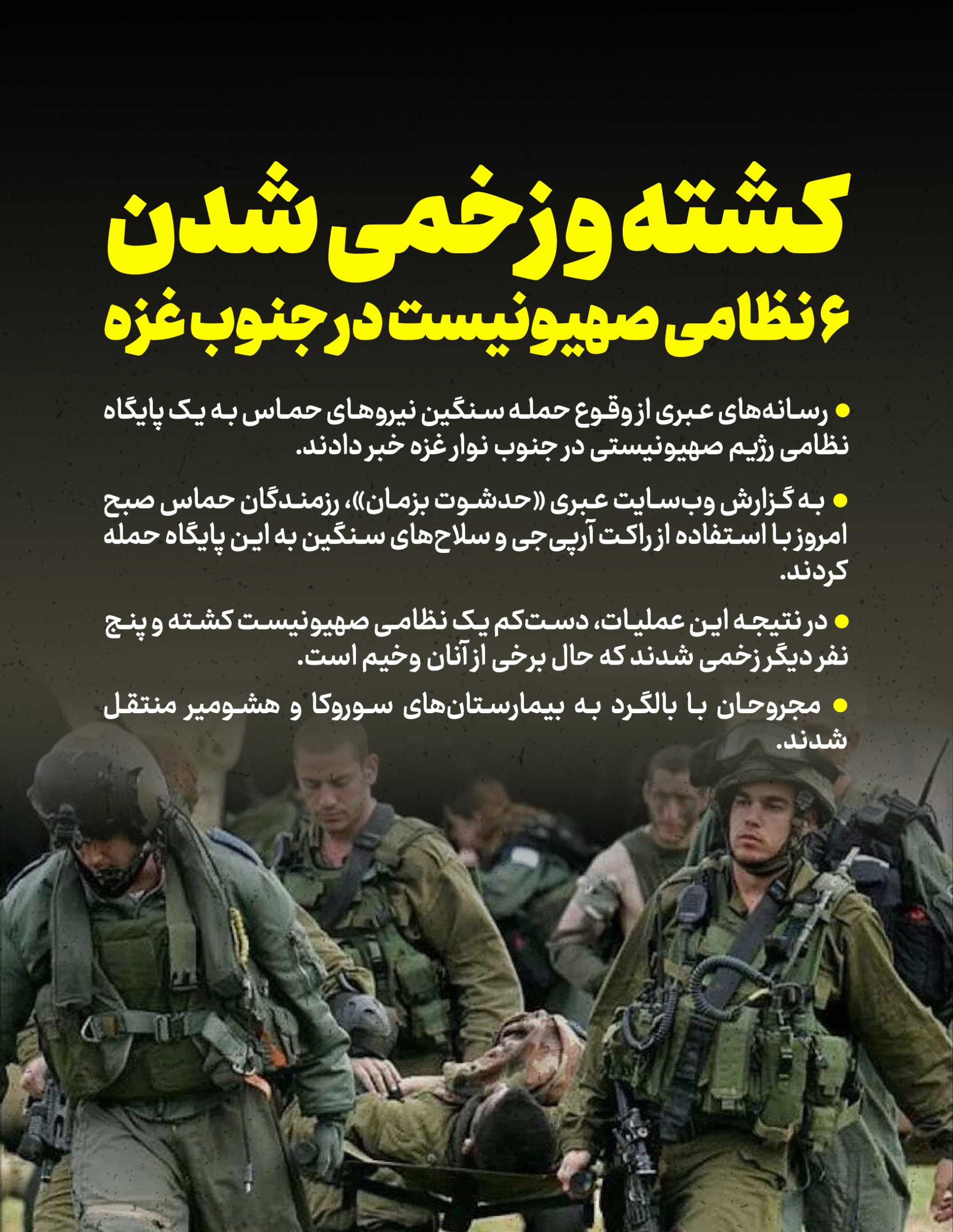 کشته و زخمی شدن ۶ نظامی صهیونیست در در جنوب غزه
