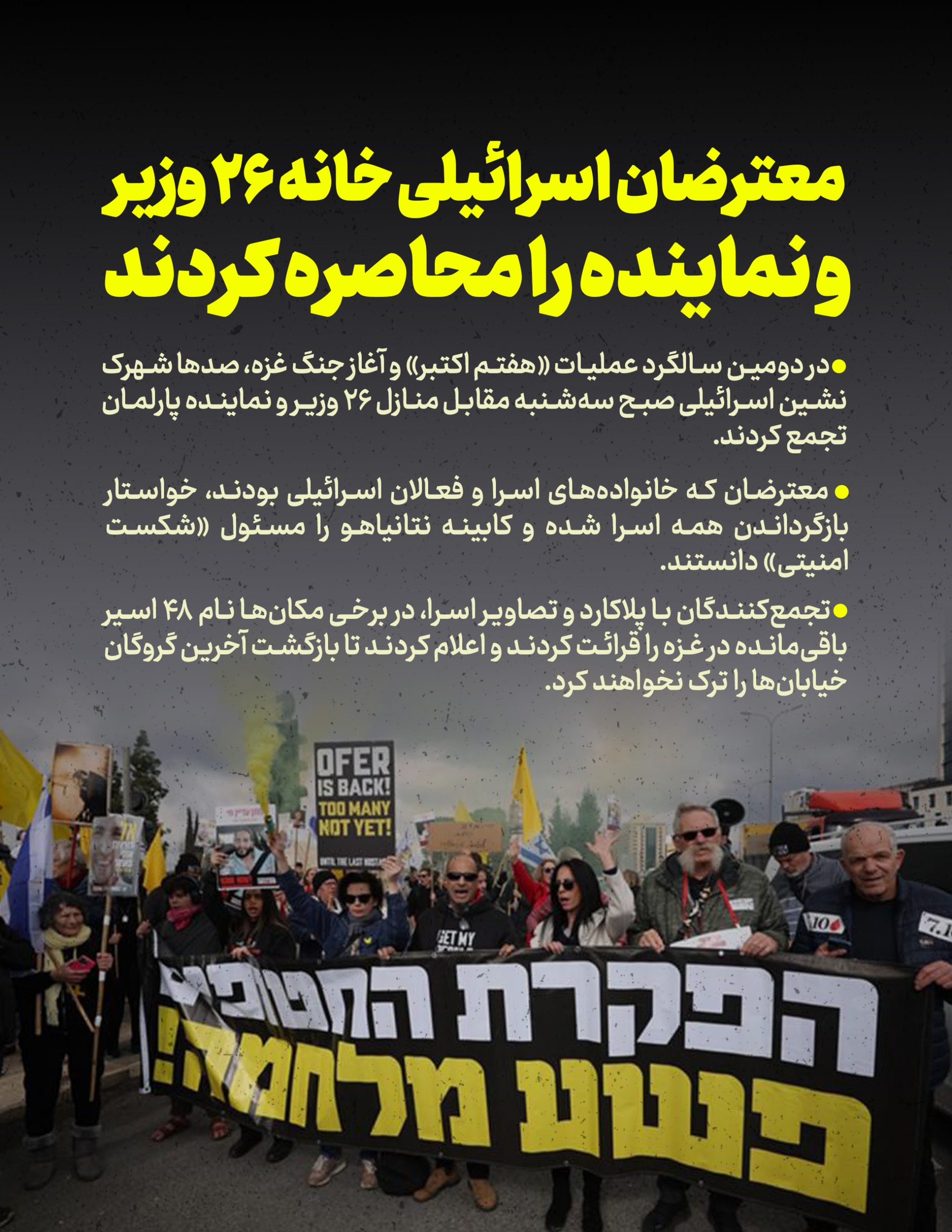 معترضان اسرائیلی خانه ۲۶ وزیر و نماینده را محاصره کردند
