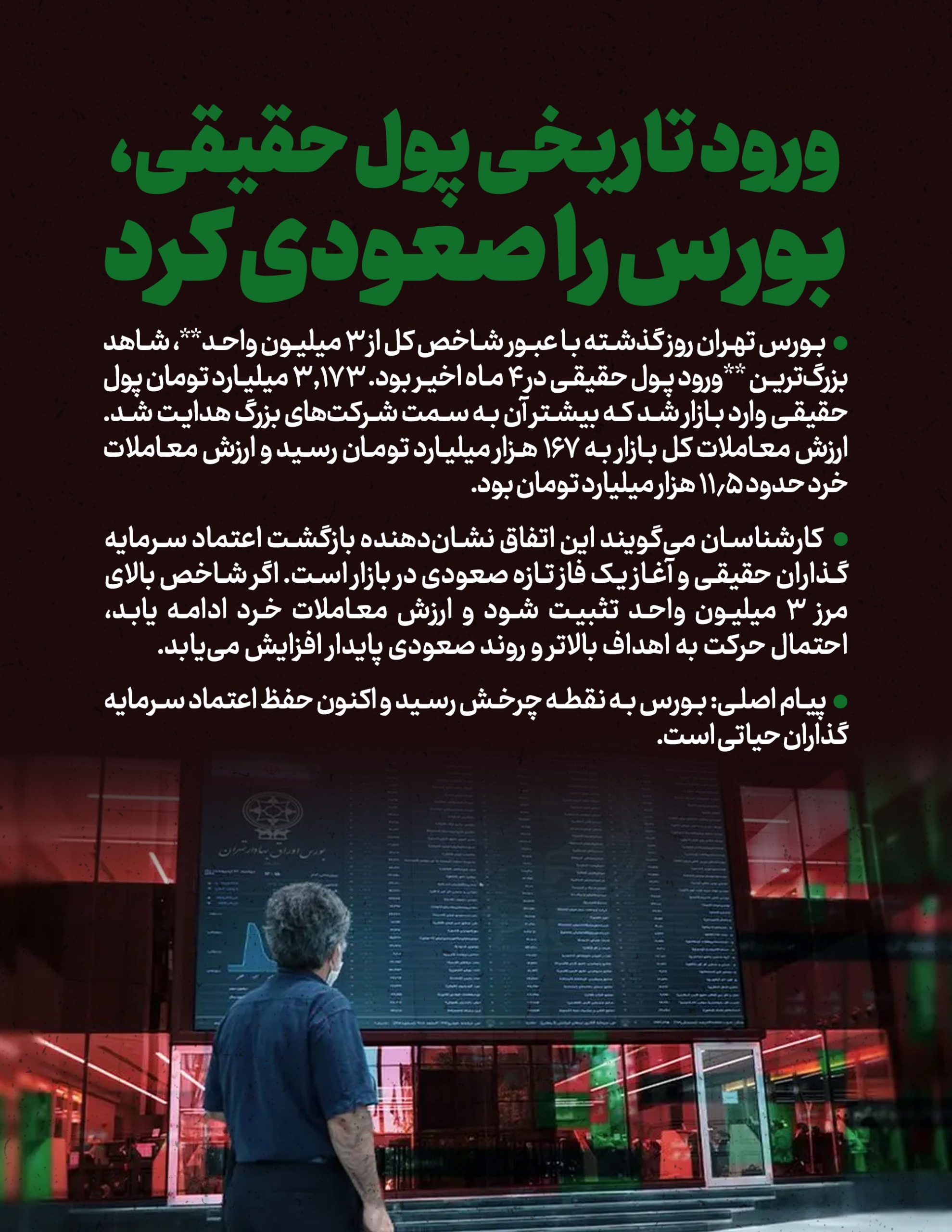 ورود تاریخی پول حقیقی، بورس را صعودی کرد