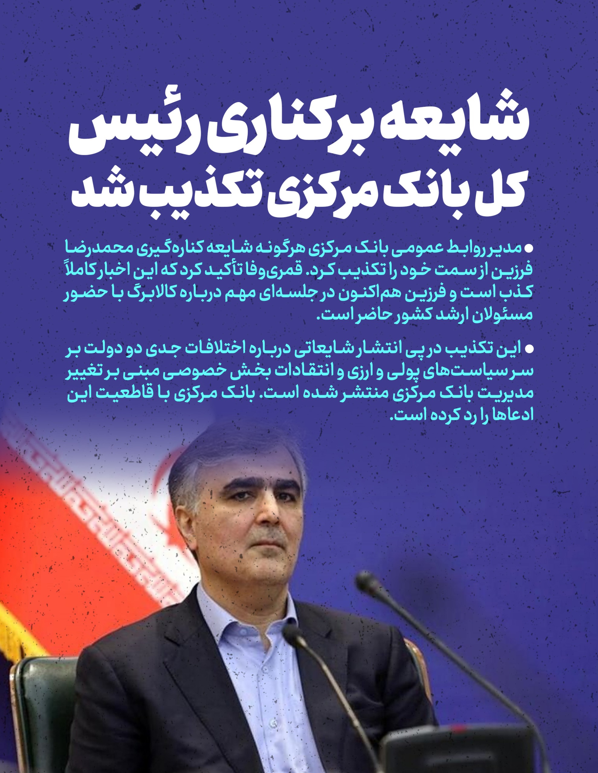 شایعه برکناری رئیس کل بانک مرکزی تکذیب شد