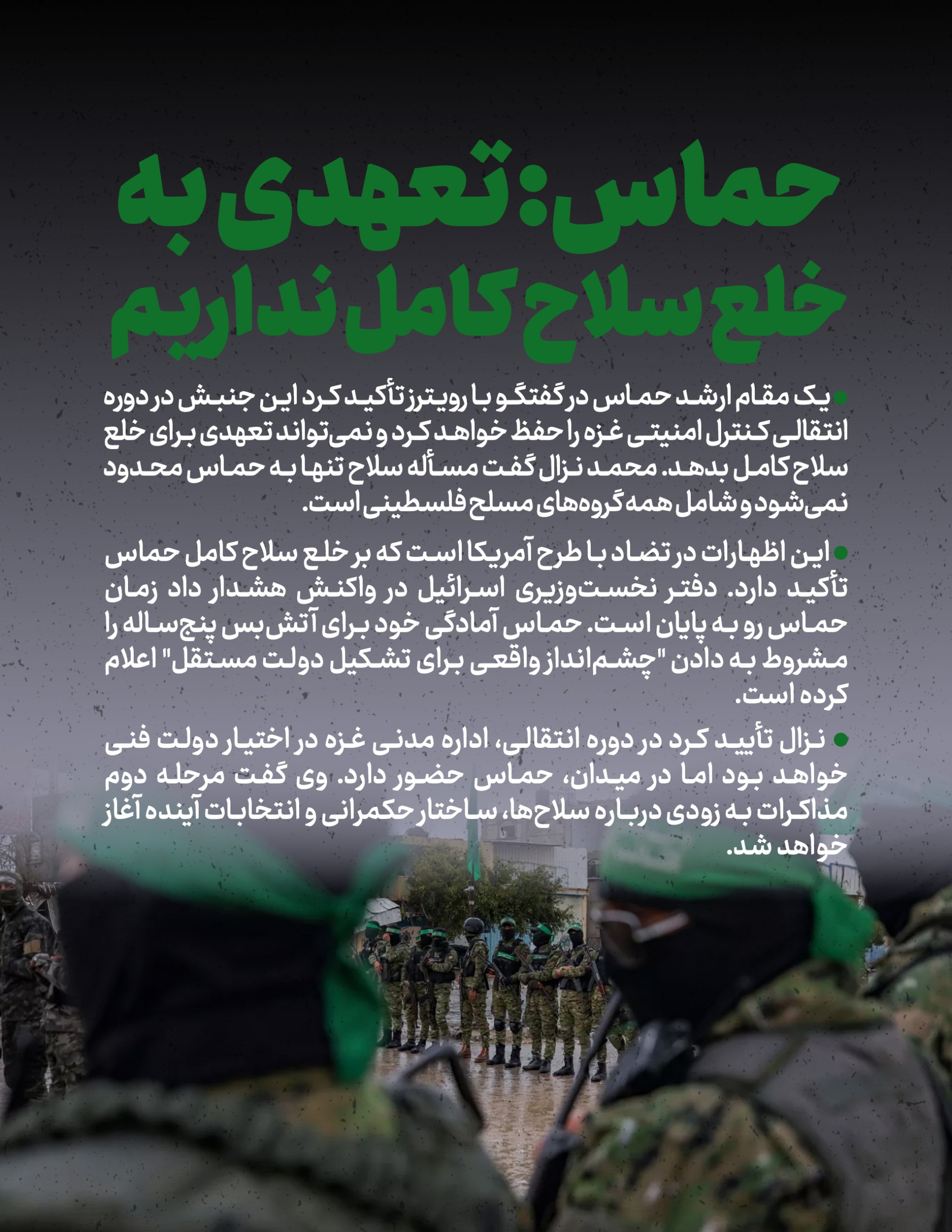 حماس: تعهدی به خلع سلاح کامل نداریم