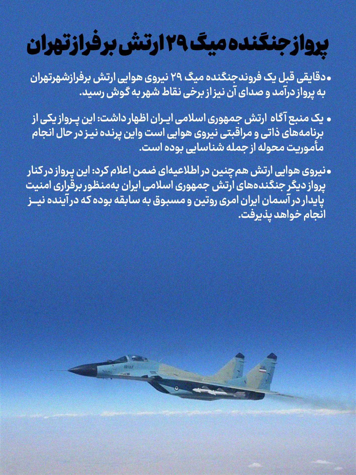 پرواز جنگنده میگ ۲۹ ارتش بر فراز تهران