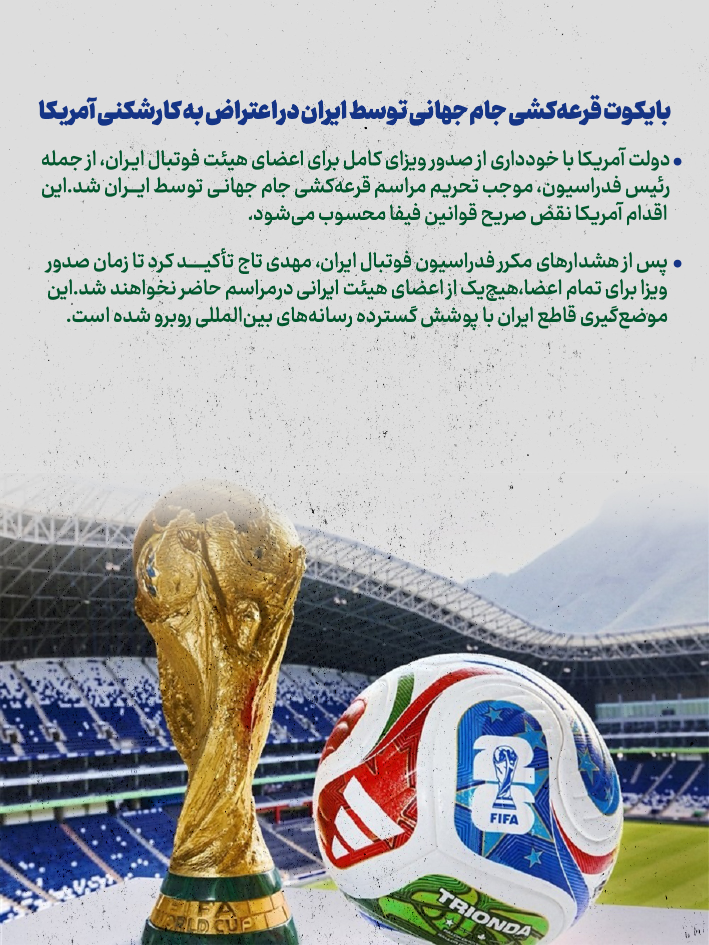 بایکوت قرعه کشی جام جهانی توسط ایران در اعتراض به کارشکنی آمریکا