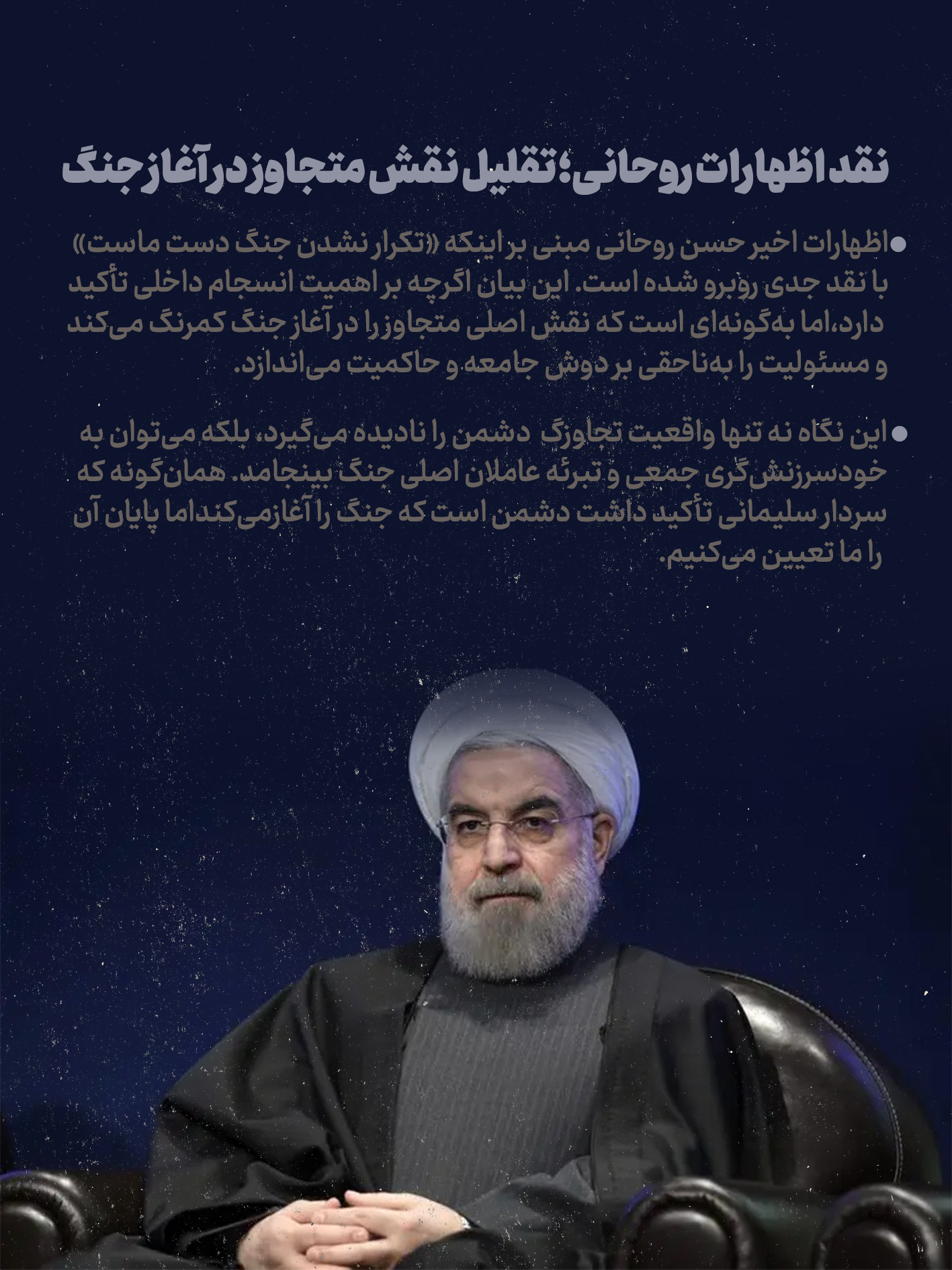 نقد اظهارات روحانی؛ تقلیل نقش متجاوز در آغاز جنگ