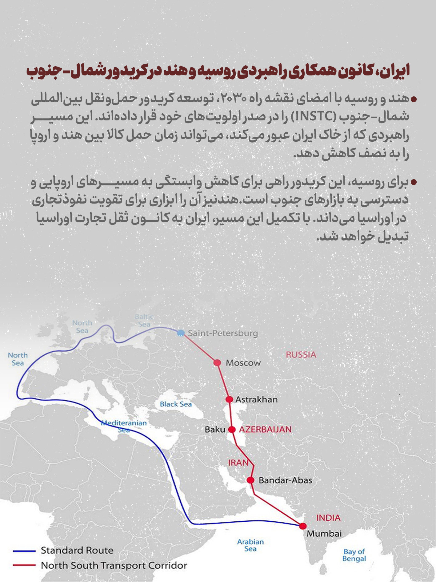 ایران کانون همکاری راهبردی روسیه و هند در کریدور شمال-جنوب