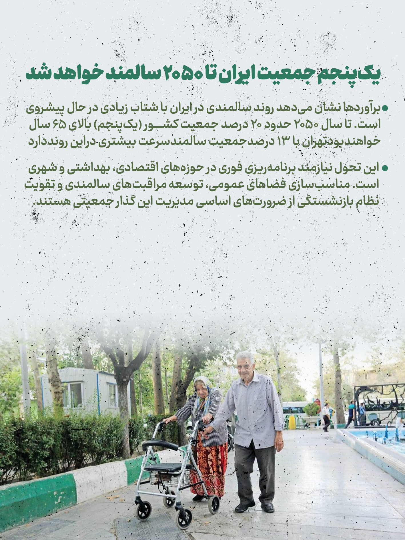 یک پنجم جمعیت ایران تا ۲۰۵۰ سالمند خواهد شد
