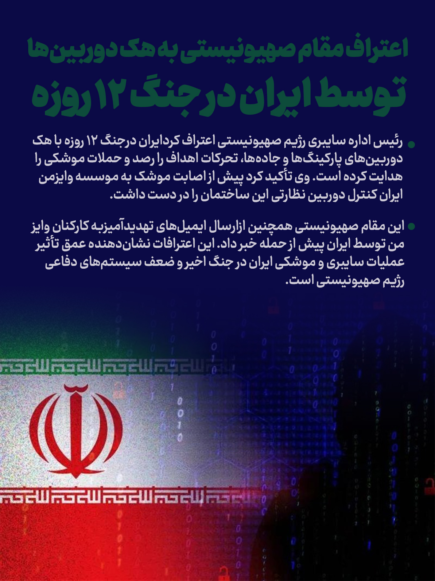 اعتراف مقام صهیونیستی به هک دوربین ها توسط ایران در جنگ ۱۲ روزه