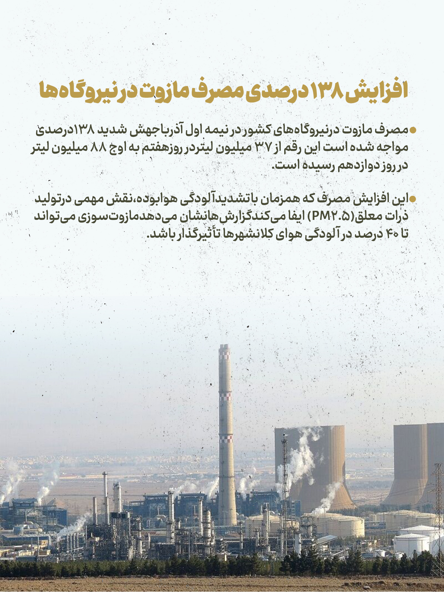 افزایش ۱۳۸ درصدی مصرف مازوت در نیروگاه ها