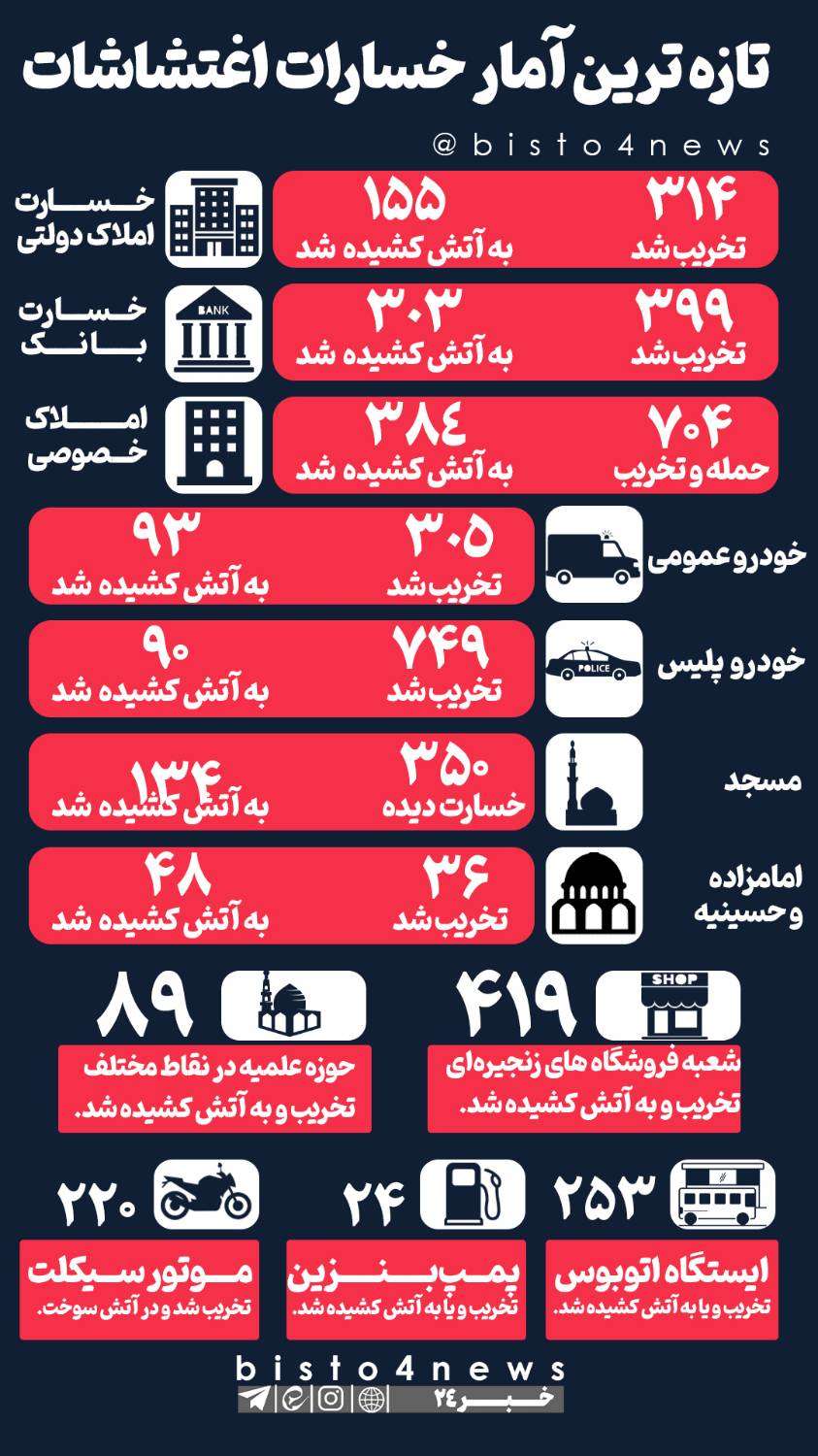 تازه ترین آمار خسارات اغتشاشات