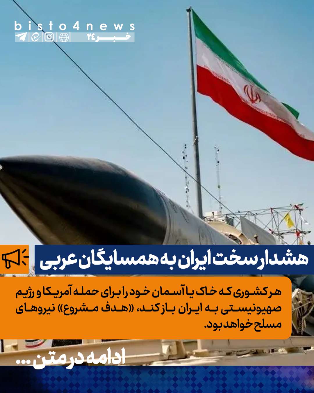 ۱- ایران به کشورهای منطقه هشدار داد: هر کشوری که خاک یا آسمان خود را برای حمله آمریکا و رژیم صهیونیستی به ایران باز کند، «هدف مشروع» نیروهای مسلح خواهد بود.